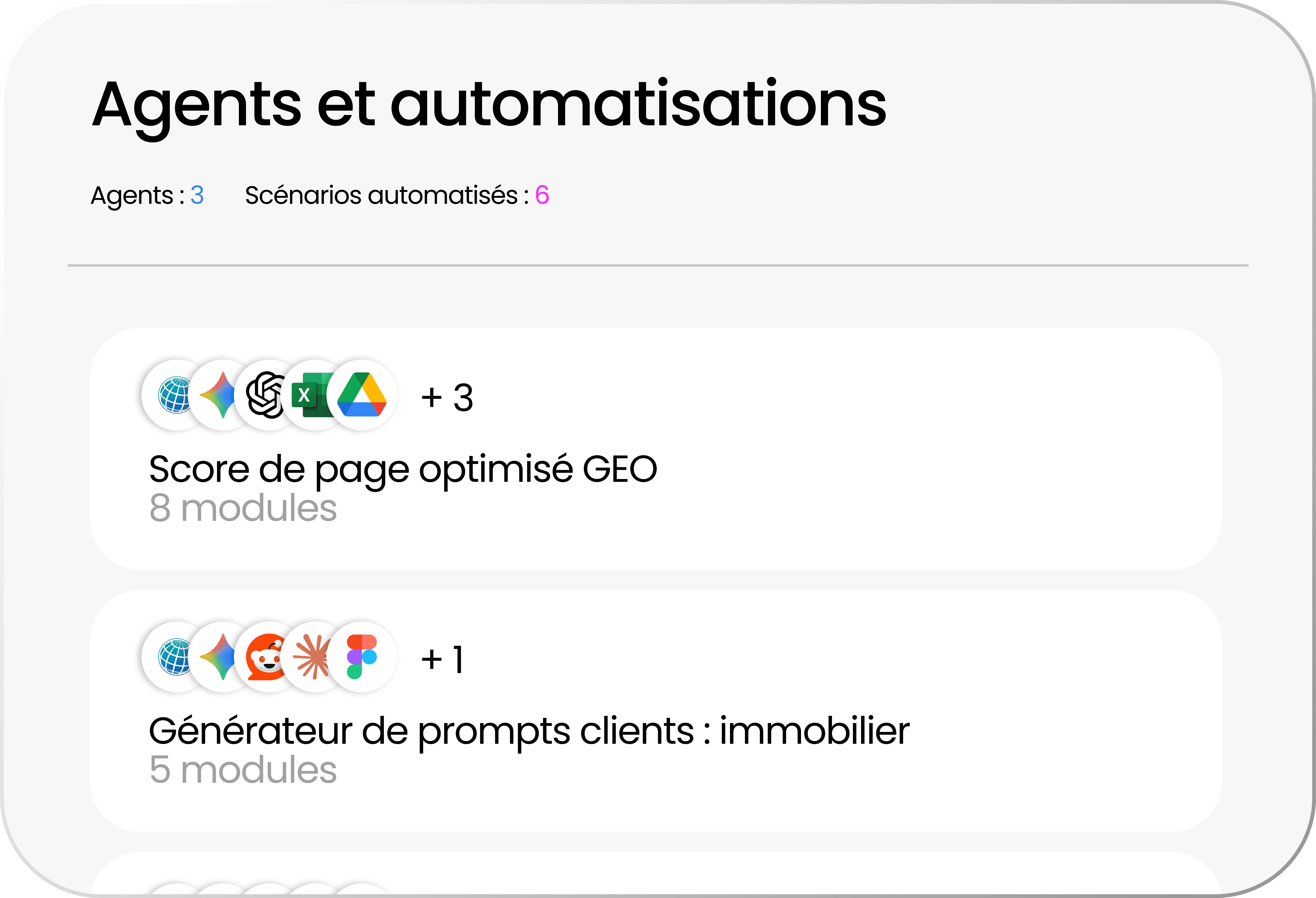 Créez vos agents IA pour générer des contenus et des audits automatiquement.
